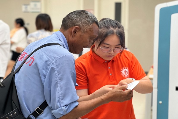 7月5日,年近80的張奶奶站在雅安市人民醫院的自助繳費機前犯難。“奶奶,有什么需要我幫忙的嗎?”來自西南石油大學的志愿者同學黃帥見狀便主動上前詢問,在他的幫助下,張奶奶順利解決了難題,連連道謝。
