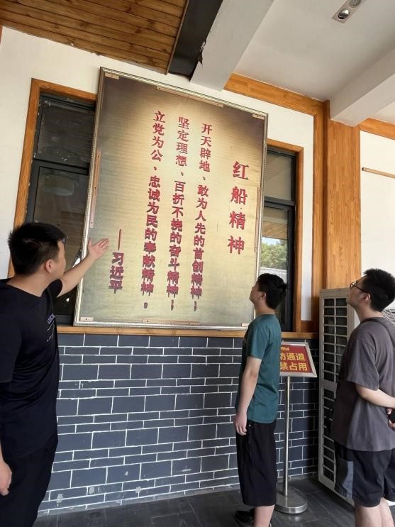隊伍首先進(jìn)入的一號展廳承載著偉大的紅船精神,其中呈現(xiàn)了中國共產(chǎn)黨光輝的發(fā)展歷程;隨后進(jìn)入的二號展廳展示了中國共產(chǎn)黨對中國文化和教育的重要貢獻(xiàn)。