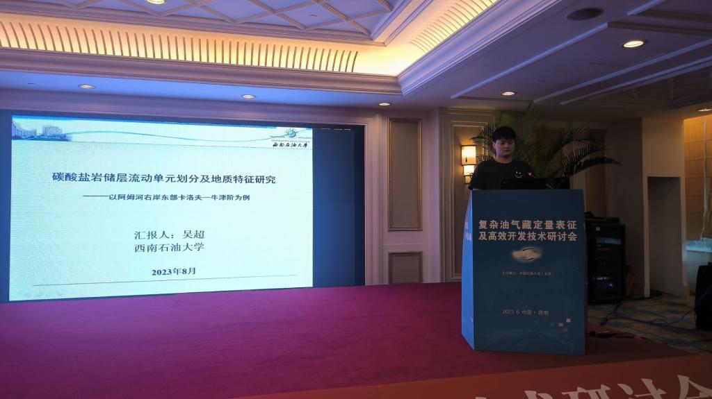 本次研討會,錄取報告40余篇。我院碩士研究生吳超等人參加口頭匯報,就碳酸鹽巖儲層流動單元劃分及地質特征研究專題做了詳細報告,同時,學生們還與參會專家學者進行了廣泛的研究討論與交流。