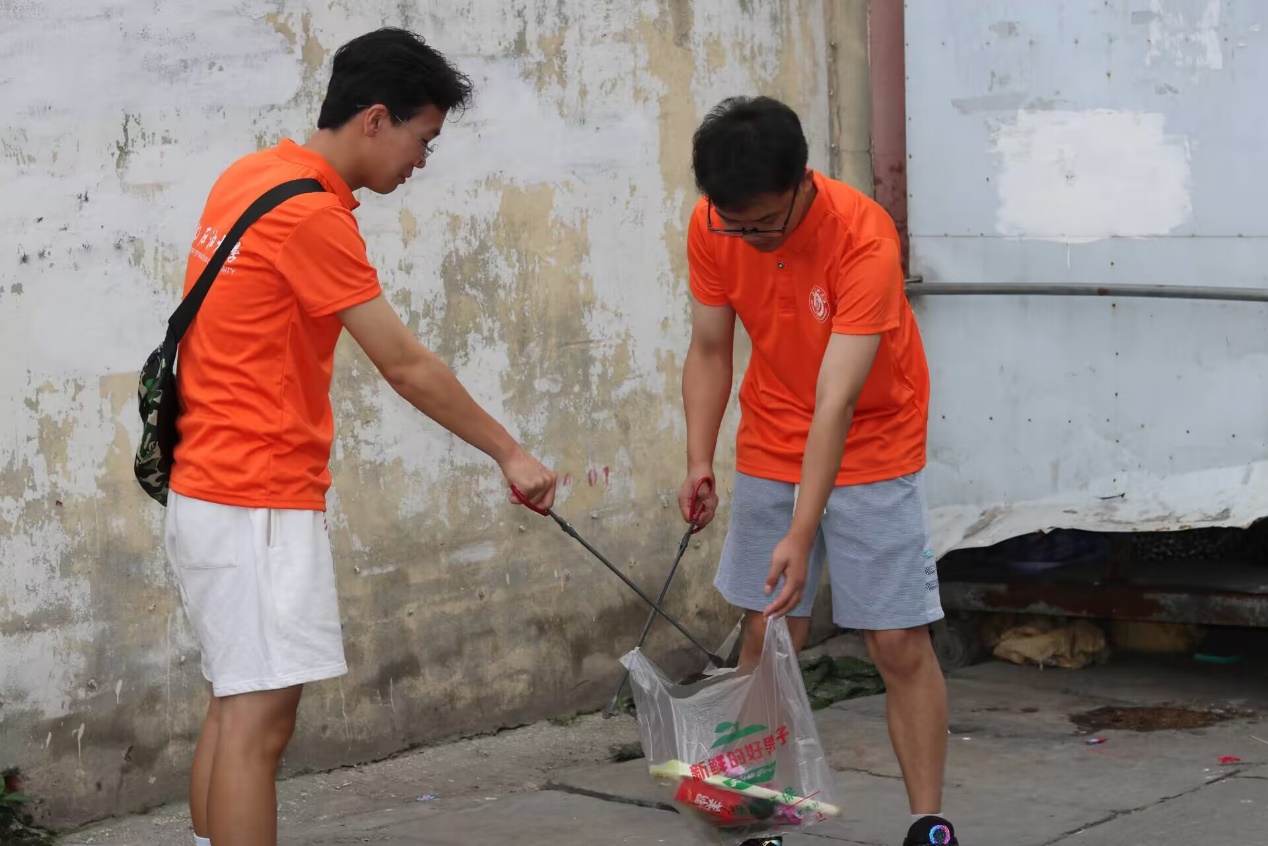 驕陽當空,志愿者們身穿橙色馬甲,拿起勞動工具,擼起袖子,彎下身子,相互協作,不講辛苦,不挑任務,深入社區的各個地方進行紙屑、塑料袋、雜物及枯枝敗葉的清理。志愿者們本著“堅持發現一處就清理一處”的原則,細心清理著社區里的每一處衛生死角,杜絕細菌滋生,阻斷污染源頭。
