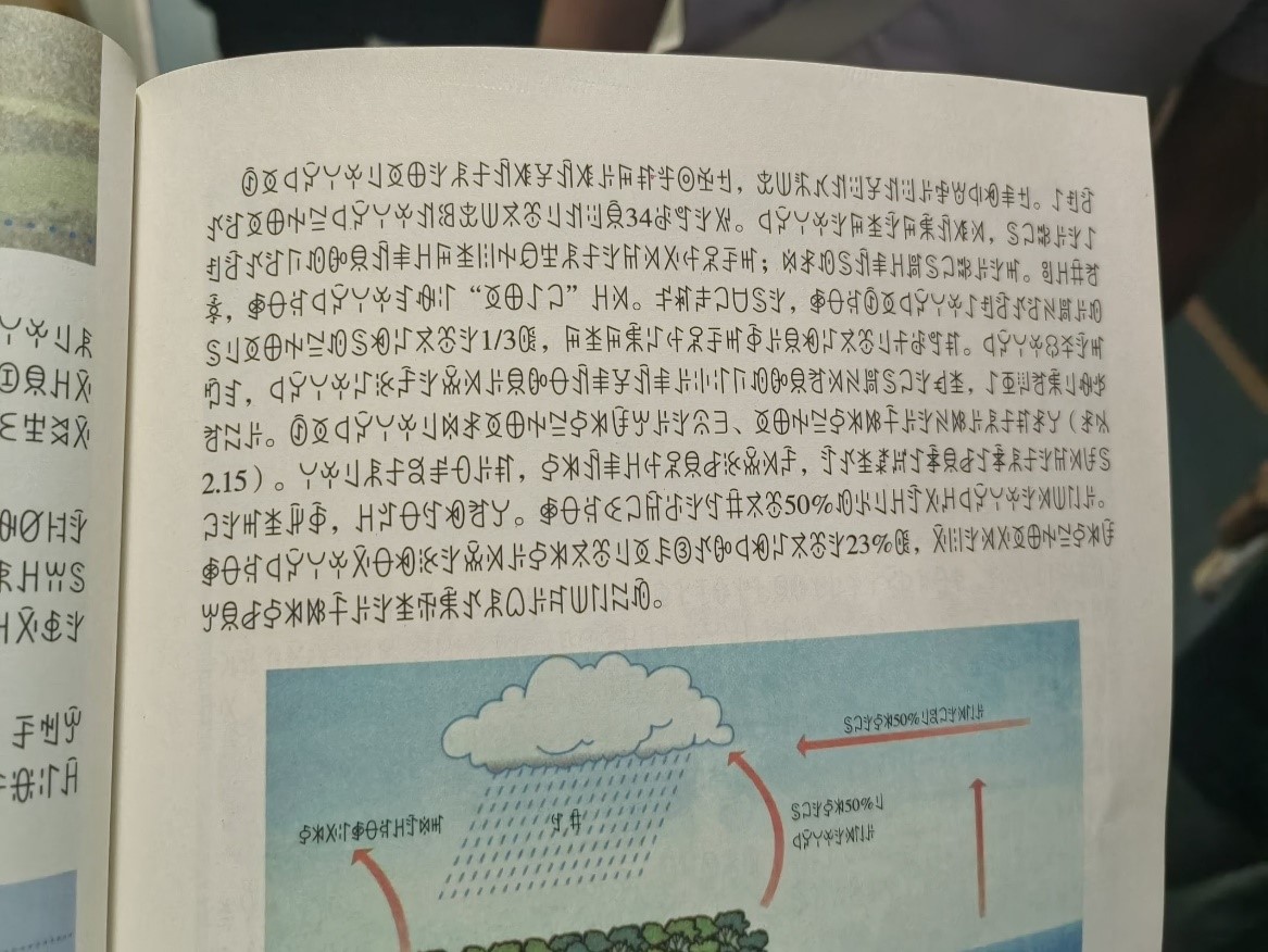 列車上的彝文版高中地理書