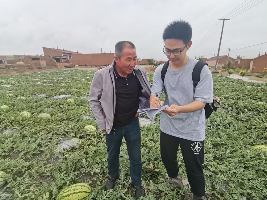 隨后,大家分工協作,相互配合,盡管太陽暴曬,瓜田蚊蟲多,大學生們通過積極運用所學專業知識最大限度地幫助瓜農在生產銷售中所遇到的問題,大力宣傳科技對于生產的重要性,使瓜農意識到科學的生產勞作才能獲得更可觀的經濟效益。
