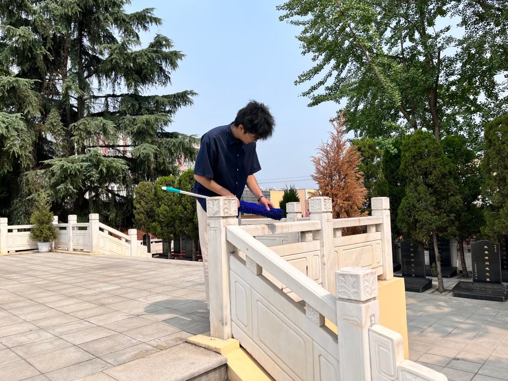 新都區烈士陵園位于成都市新都區普河社區3社,始建于上世紀五十年代,占地7467平方米,共安葬烈士68名。到達烈士陵園后,隊員們通過烈士陵園的宣傳欄和工作人員的講述,了解了烈士們的生前事跡,向人民功臣紀念碑默哀并表示緬懷和追思。祭奠完畢之后,隊長組織隊員們進行陵園祭掃。經過兩個小時的勞動之后,隊員們完成清理工作并集合分享此次實踐的感悟。