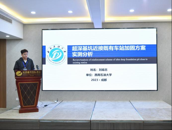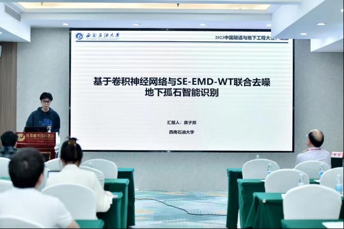 我院碩士生龔子邦、陳霖、任偉及劉瑜志參加了此次會議并進行了分會場學術報告。龔子邦作了“基于卷積神經網絡與SE-EMD-WT聯合去噪地下孤石智能識別”的報告,論證了基于香農熵理論的聯合去噪方法的可行性與卷積神經網絡智能識別地下不良地質體的智能方法,為盾構隧道地表探測孤石提供了新思路。陳霖作了“暗挖隧道近接既有地鐵線路施工變形控制研究”的報告,論證了暗挖隧道開挖方案的可行性,優化了輔助加固措施,對控制暗挖隧道施工引起的地鐵線路的變形提供了新的思路。任偉作了“長距離巖層EPB/TBM雙模盾構刀具磨損特征及優化措施”報告,其研究對比分析EPB與TBM模式下滾刀的磨損特征,針對地層提出了具有針對性的滾刀減磨優化措施,提升了滾刀的使用壽命、耐磨性以及盾構機掘進效率。劉瑜志作了”超深基坑近接既有車站加固方案實測分析“的報告,提出了超深基坑近接既有車站開挖加固方案,通過現場工程監測數據,分析新建深基坑開挖對近接既有車站的影響規律,和有限元模型數值結果對比分析,對建立的數值模型的可靠性以及加固方案的有效性進行驗證。匯報結束后,四位同學分別與專家學者們進行了深入交流,參會專家對研究內容提出了寶貴的意見與建議。
