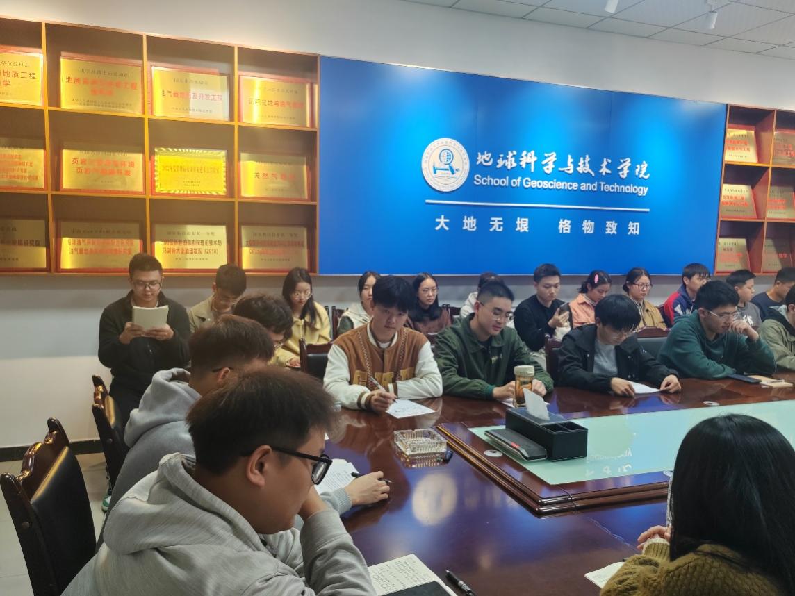 最后,史格老師號召地科院的同學(xué)結(jié)合自身專業(yè)特色,繼承和發(fā)揚黨的二十大精神、踐行石油精神,向前輩學(xué)習(xí),到祖國最需要的地方去發(fā)光發(fā)熱,開辟屬于新時代黨員新的征程。