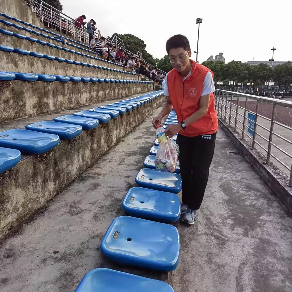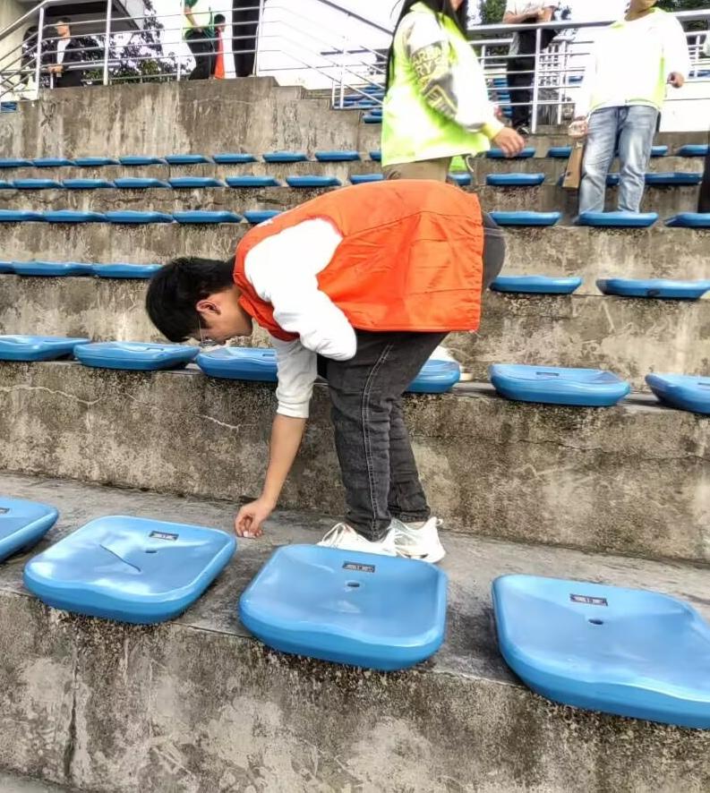 賽道條條載勝利,吶喊聲聲震雷霆。23級新生運動會如火如荼地進行著,選手們在賽道上揮灑汗水,觀眾們在看臺上吶喊助威。運動會結束后的清潔工作不容小覷,為維持干凈整潔的校園環境,展現學校的優美校容,地科院青年志愿者協會組織本院志愿者于10月21日下午對賽后觀眾席進行了看臺清掃志愿服務活動。