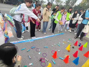 活動關卡四是“愛的魔力套圈圈”。在游戲兌換區,孩子拿著通關卡進行圈圈兌換并套圈,家長們在一旁鼓勵著孩子們,孩子們也因套中了自己心儀的禮品而無比激動。