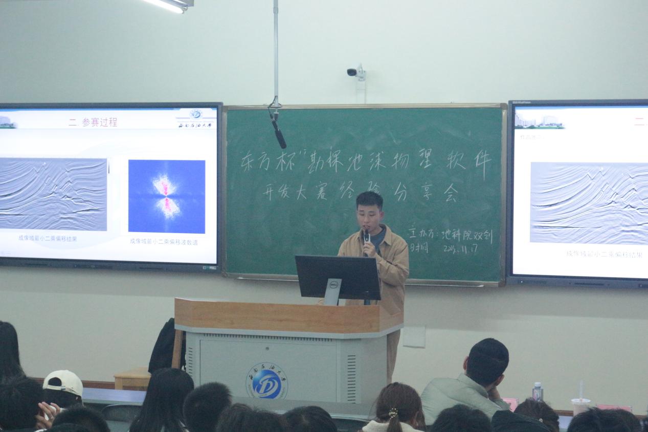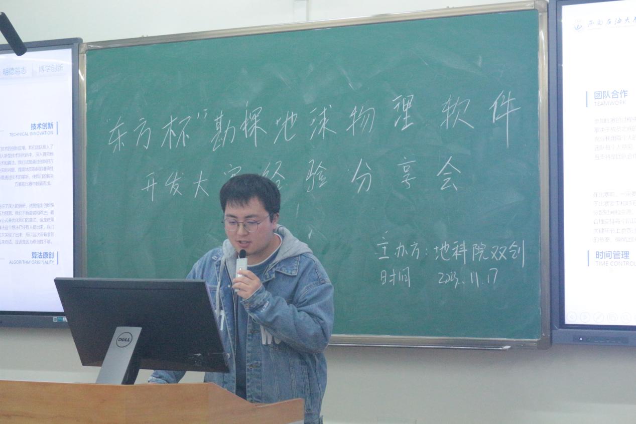 為加強本科同學對相關學科競賽的了解,同時宣傳學科競賽的重要性,并為下一屆“東方杯”全國大學生勘探地球物理軟件開發大賽做宣傳。地科院雙創中心于11月17日晚在明辨樓c302舉行了“東方杯”全國大學生勘探地球物理軟件開發大賽經驗分享會。