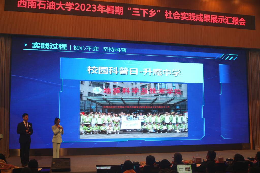 用思想引領立德,用校園活動立魂,用實踐鍛煉立能。為總結活動經驗,鞏固實踐成果,進一步發揮先進示范引領作用,鼓勵更多學生踴躍參與社會實踐,促進大學生暑期“三下鄉”社會實踐活動的持續發展,11月24日下午,“實踐歸來話成長”——西南石油大學2023年暑期“三下鄉”社會實踐成果展示匯報會在圖書館學術報告廳順利召開。