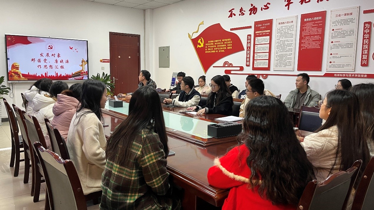 12月6日下午,地科院碩士生2021級第一黨支部在明辨樓A302召開發展預備黨員大會。黨支部全體正式黨員、預備黨員及新發展預備黨員參會,會議由副書記劉佰衢主持。