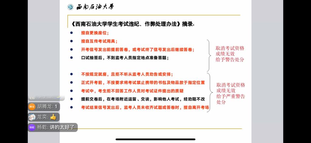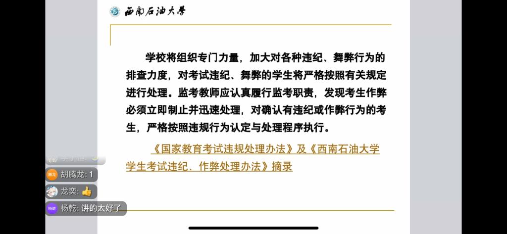 張俊峰詳細介紹了英語四六級的前期準備、考試流程、注意事項等內容,對學生進行了誠信教育。會上,張俊峰與上官晴天介紹了《國家教育考試違規處理辦法》及《西南石油大學學生考試違紀、作弊處理辦法》摘錄等內容。