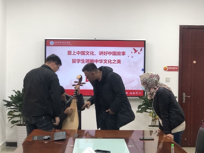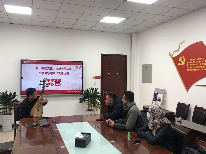 為了講好中國故事,傳播好中國聲音,促進中外文化交流,讓來華留學生深入了解中國傳統文化,地科院舉辦愛上中國文化·講好中國故事系列活動,讓留學生領略中華文化之美。12月14日,王晨晨老師邀請留學生了解中國傳統樂器——琵琶,現場由地質學2021級同學付亦豪演奏,讓留學生零距離感受中華傳統文化。