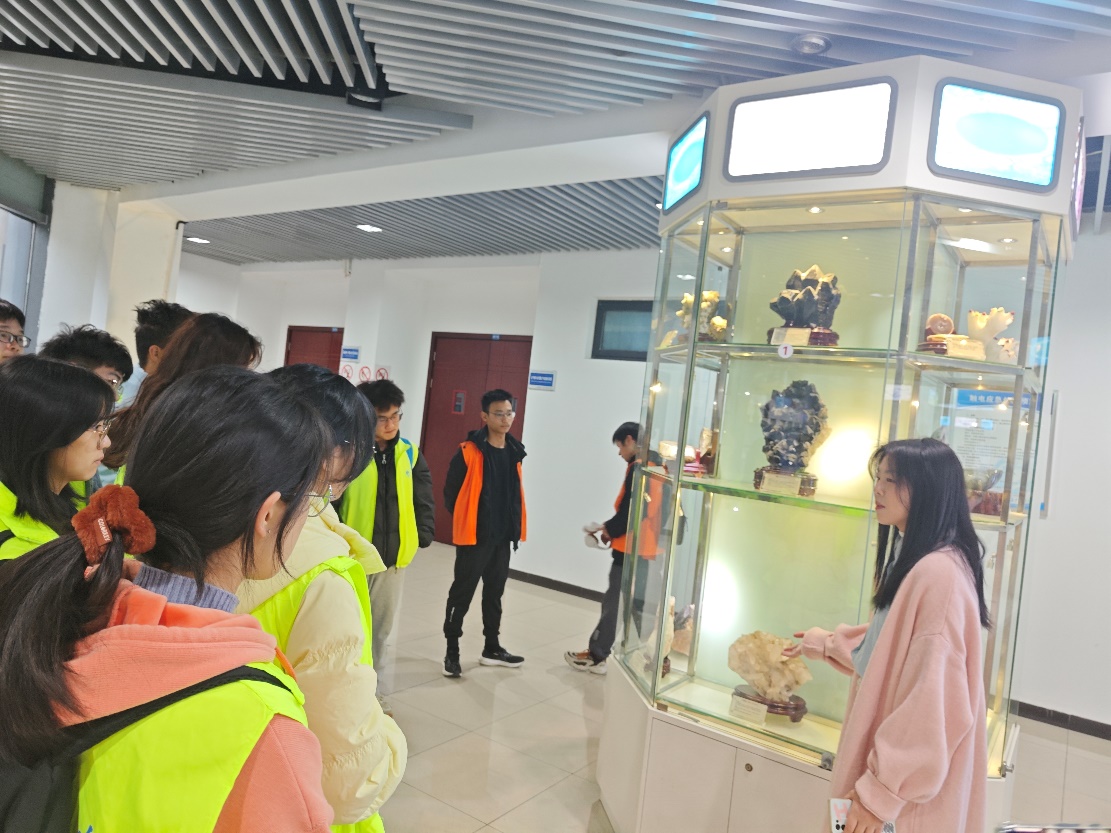 活動伊始,在志愿者帶領下同學們被分為4組,分別跟著熟識地質知識的學長學姐們前往a區礦石和古生物處聽講,穿插著傳說故事,名稱由來的科普引人入勝。伴著豐富又不乏魅力的礦石和古生物,同學們認知聽講并積極與講解的學長學姐互動,整個參觀活動過程有序的進行。