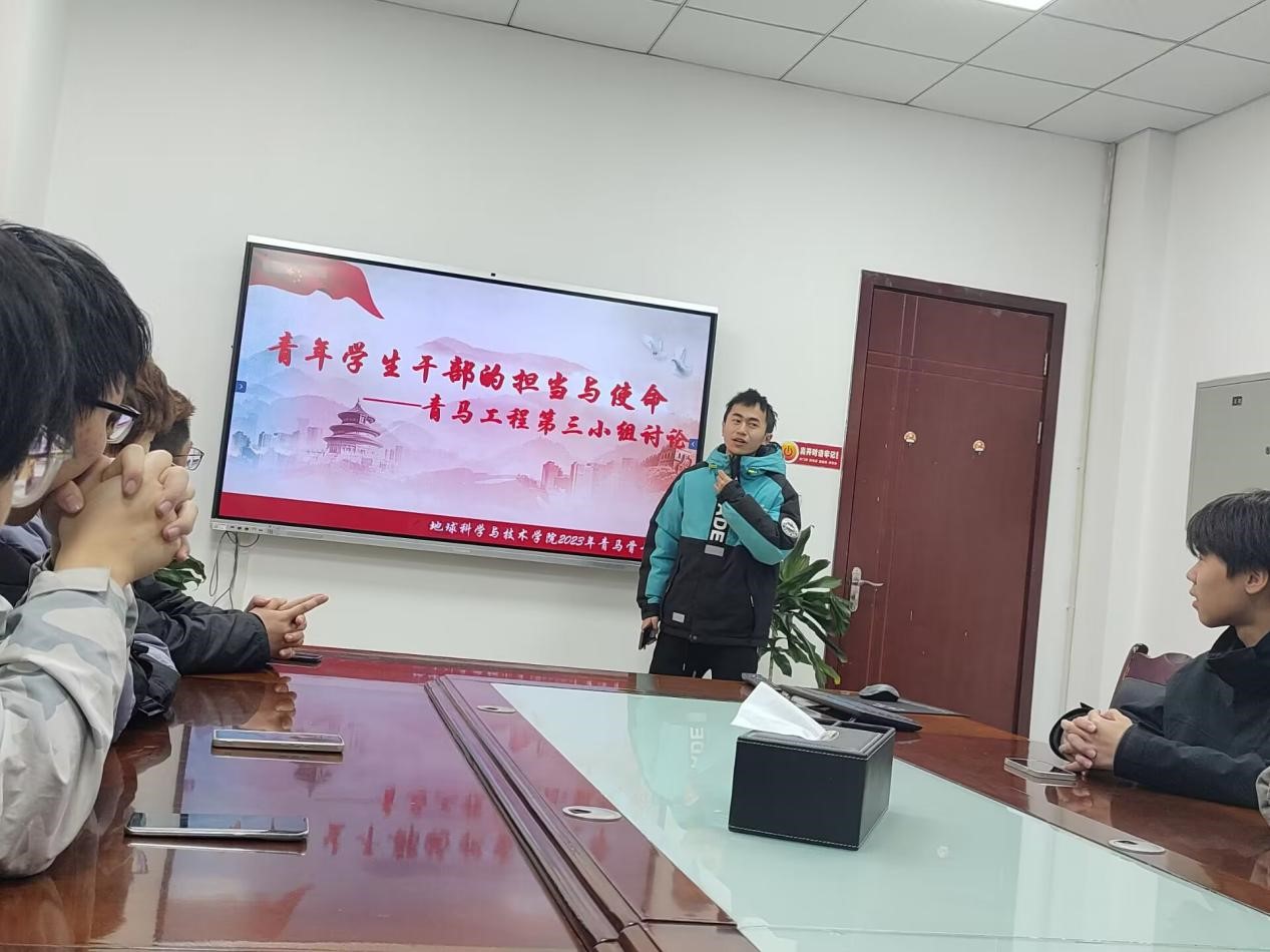 2023年12月15日,為了端正青年學生干部的思想,激發其工作學習的動力,地球科學與技術學院青馬工程第三組的成員在指導老師黃爽的組織之下,開展了主題為“青年學生干部的擔當與使命”的小組討論。