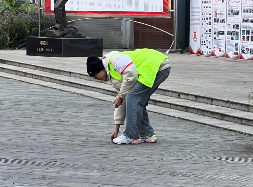 下午一點,同學們準時在明辨樓C區集合。在領取志愿者馬甲后,同學們被分為不同小組,由部門人員帶領前往不同區域開始清掃。他們手持掃帚,將路上的垃圾輕輕掃進簸箕;他們用雙手拾起花壇邊、草地邊的煙頭,裝入到垃圾袋中。他們仔細擺放著亂停的車輛,擺放到正確的停車區。大家分工明確,在活動中彼此監督,充分展現了團隊合作和奉獻精神。