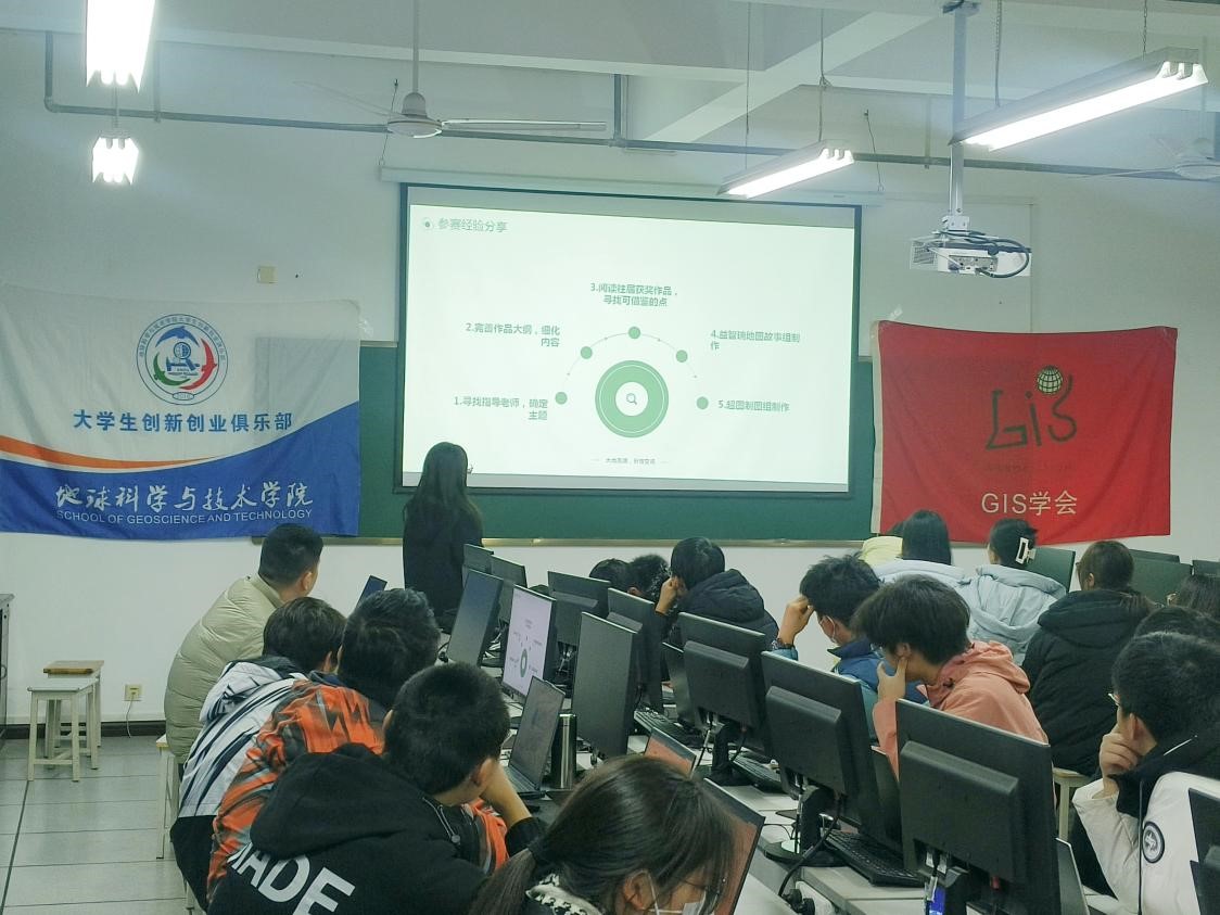 GIS學(xué)會(huì)指導(dǎo)老師王晨晨講解地科院學(xué)生社團(tuán)GIS學(xué)會(huì)的相關(guān)事宜,同時(shí)鼓勵(lì)低年級(jí)學(xué)生積極參加學(xué)科競賽,學(xué)會(huì)利用學(xué)校提供的資源和平臺(tái),解決自身訴求。
