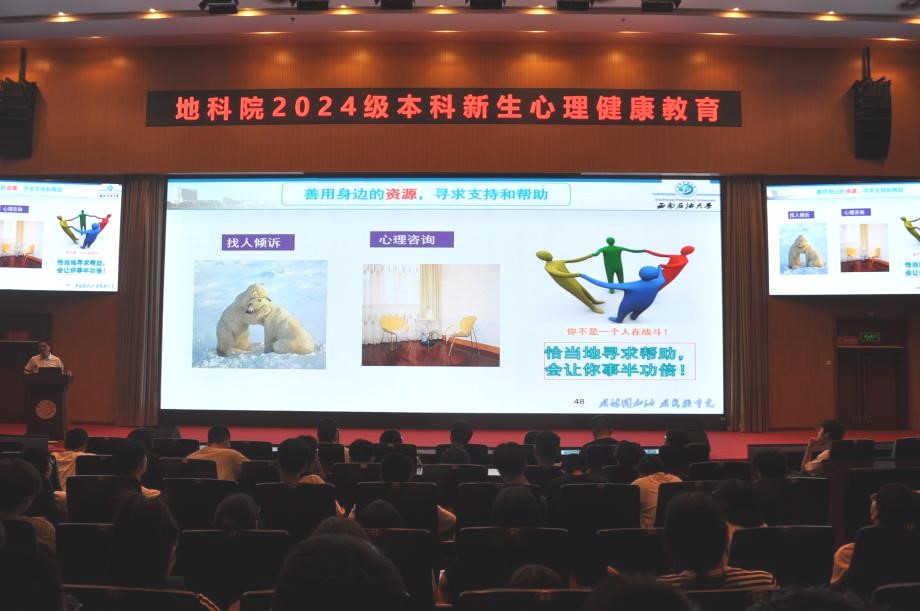 講座開始前,余強老師通過互動的形式,用“雨點變奏曲”帶領同學們進入講座氛圍,同學們積極參與互動,現場氣氛活躍。余強老師向同學們介紹了新生在大學生活的六個轉變和可能會遇見的“心”挑戰并提出專業建議,余老師提到,作為獨特的個體,在探索的過程中發現自己的閃光點是適應和發展的關鍵,并從國家政策和社會層面分別解釋了心理健康的重要性,余老師指出,心理問題是每個人都有,只是程度不同,應加強關注自身心理健康,積極應對出現的問題。勘查技術與工程專業2024級肖高峰同學表示:“聆聽了余強老師關于心理健康教育的講座后,我收獲了許多寶貴的認知和感悟。希望,是仰望星空,自踏入石大校園的那刻起,應當對未來充滿無限展望,我將會時刻牢記余老師的教導,在豐富多彩的校園生活中樹立人生的豐碑,奔赴夢與遠方!”