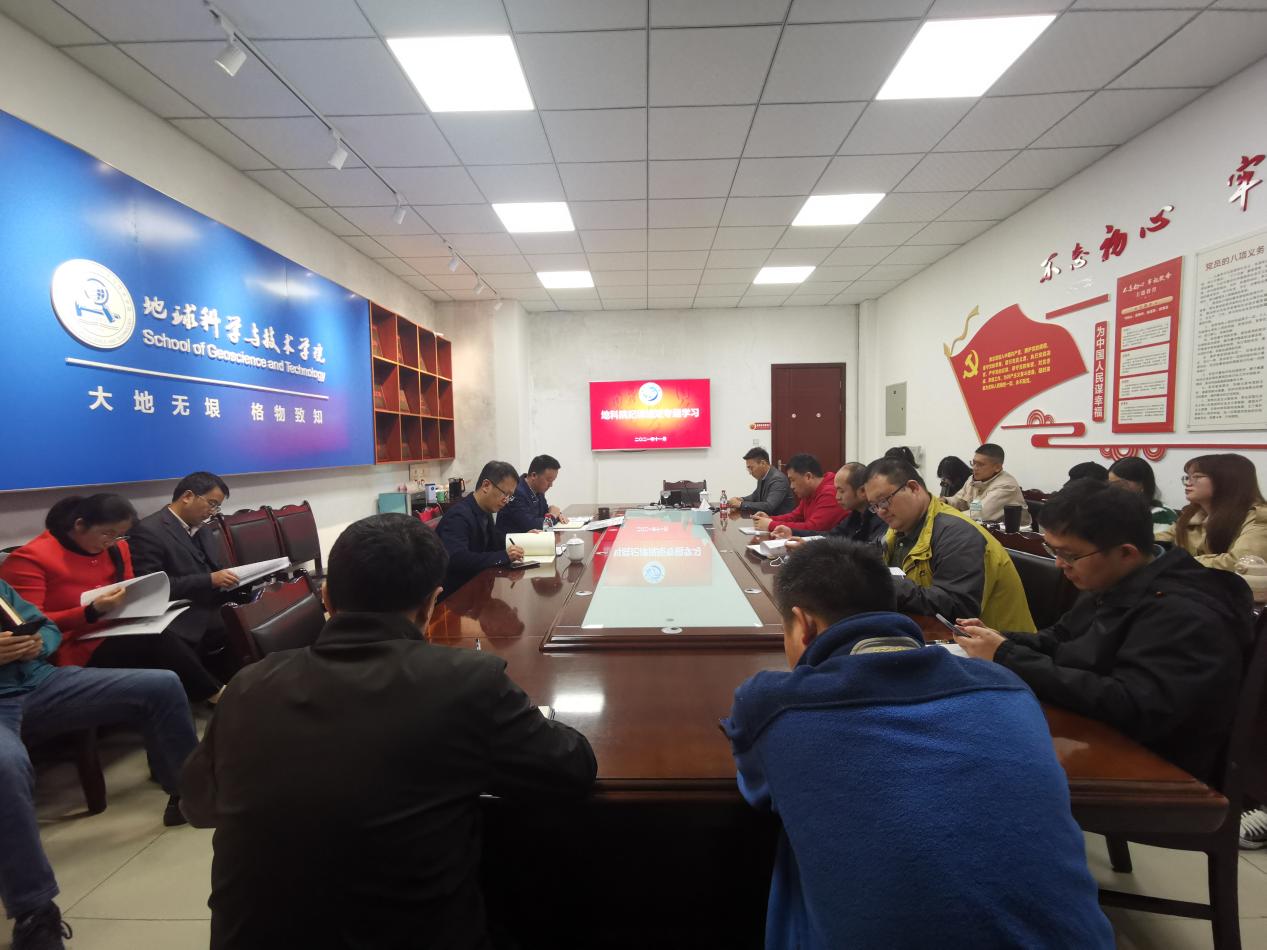 ??11月2日下午,地球科學與技術學院在明辨樓A302會議室開展紀律規矩專題學習。地科院黨委副書記范起東主持會議,全體黨支部書記、教研室主任、輔導員參會。會上,范書記帶領大家學習了《中國共產黨紀律處分條例》...[詳細]