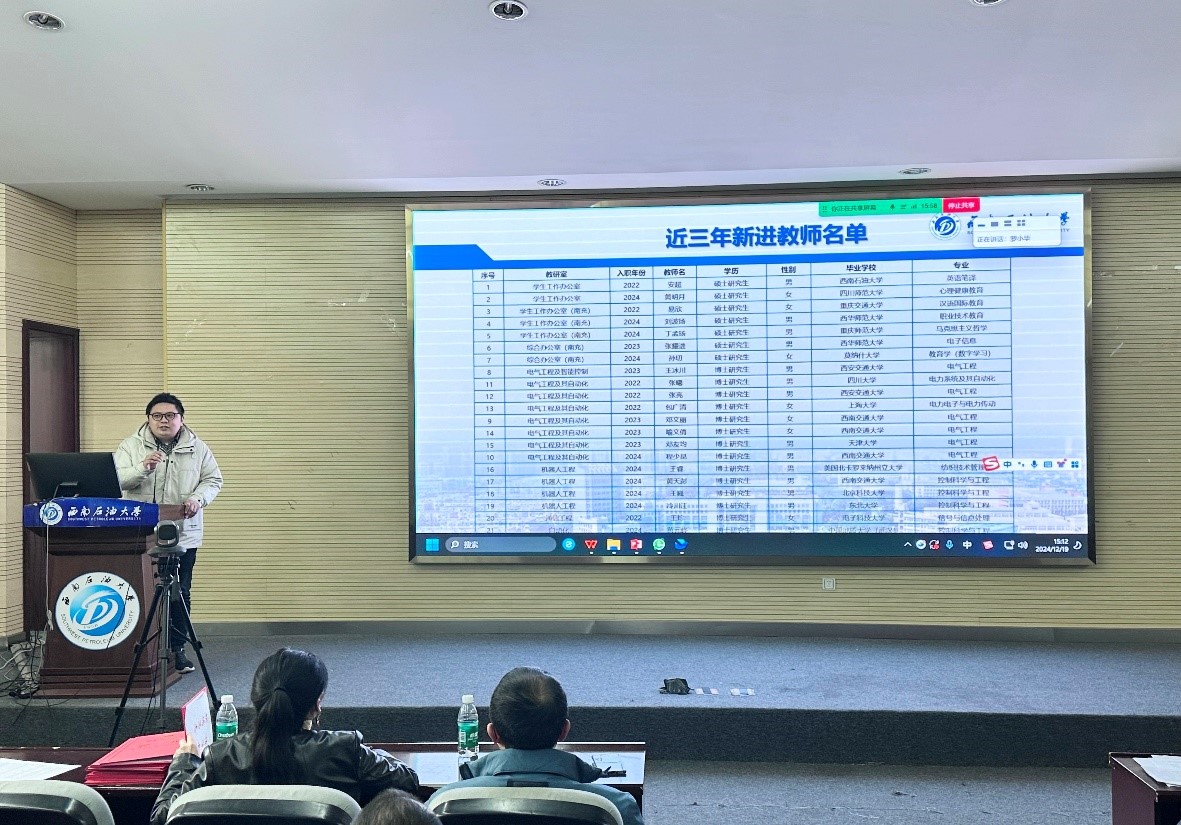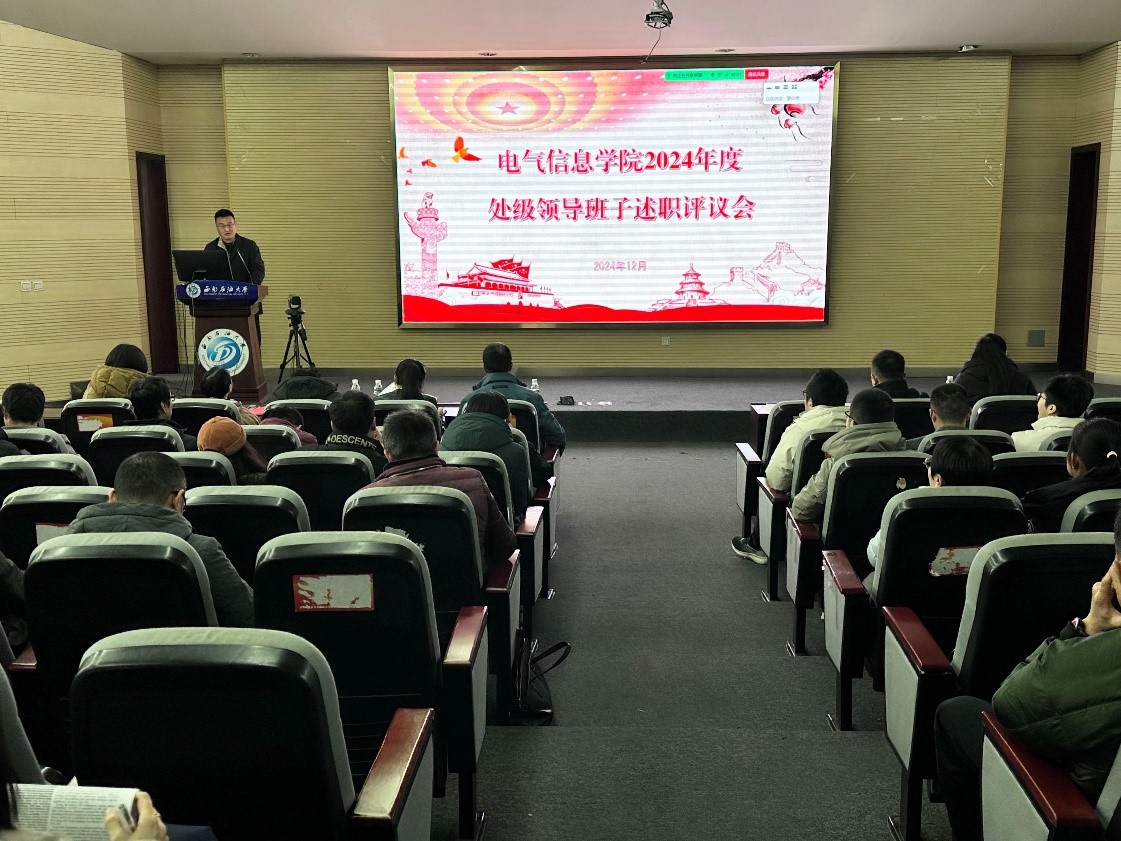 2024年12月19日下午,電信院召開新進教師見面會暨2024年度領導班子述職評議會。會議由學院黨委書記李忠偉同志主持,學院全體教職工和學生代表參加會議。