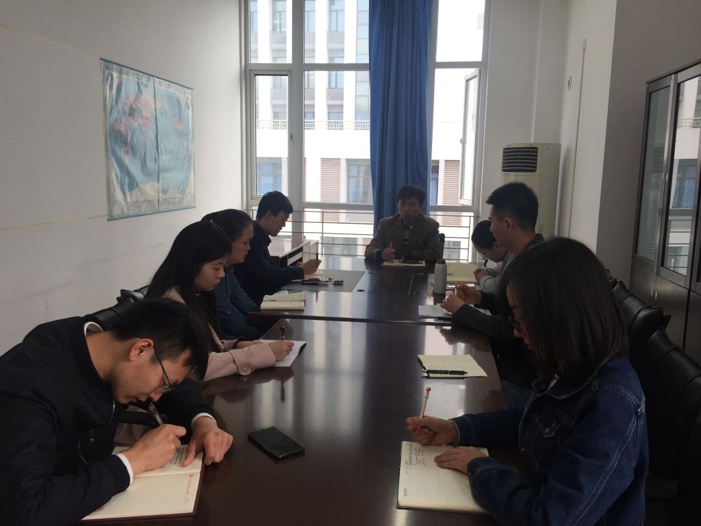 圖1 學院黨委副書記胡俊主持學院2018屆畢業生就業工作研討會