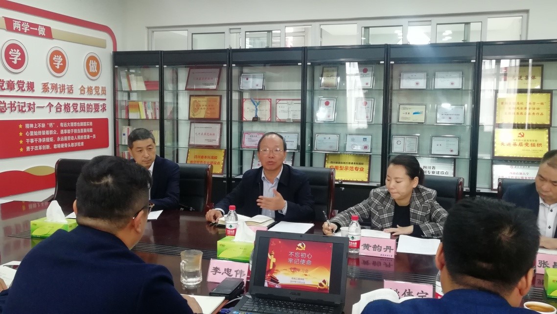 參加完石工院的調研指導后,鄧良基一行又來到機電院,對機電院的主題教育情況進行調研指導。