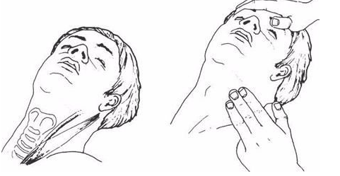 第五:心肺復蘇第二步“開放氣道”。救援者需將傷者姿勢擺正為仰臥位置,處于傷者右側以方便施救。左手掌根輕壓于傷者額頭,并用右手食指與中指將傷者的下巴輕輕抬起。查看傷者是否還有呼吸或呼吸是否順暢。