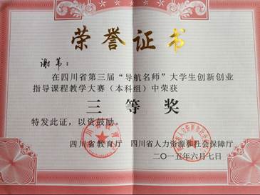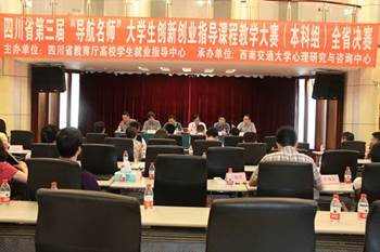 四川省第三屆“導航名師”大學生創新創業指導課程教學大賽由四川省教育廳和人社廳聯合主辦,旨在全面落實國務院《關于進一步做好新形勢下就業創業工作的意見》(國發[2015]23號)和中共四川省委辦公廳、四川省人民政府辦公廳《關于完善體制機制大力促進大學 生和科技人才創新創業的意見》(川委辦[2014]25號)和《關于加大力度促進高校畢業生就業創業的意見》(川辦發[2014]26號)的要求,是推動四川省高校深入開展創新創業教育的重要舉措。