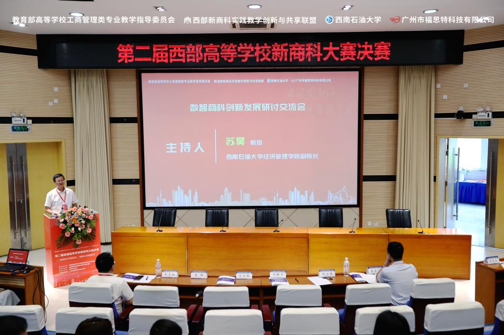 6月1日,由西南石油大學承辦的第二屆西部高等學校新商科大賽決賽在我校舉行。來自西安交通大學、電子科技大學、西北農林科技大學、西北大學、西南石油大學等高校的領導和專家以及西部新商科實踐教學創新與共享聯盟和廣州市福思特科技有限公司的代表受邀出席此次大賽。