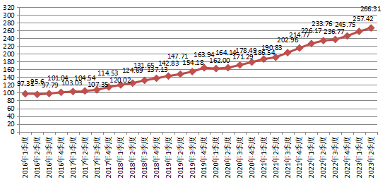 2023年2季度中國天然氣行業(yè)景氣指數為266.31,處于很景氣狀態(tài)。本季度與2023年1季度相比有小幅上升,景氣變動系數為1.035。在評價天然氣行業(yè)景氣狀態(tài)的五大指標中,天然氣進口狀態(tài)指標出現(xiàn)小幅下降,天然氣銷售公司經營狀態(tài)指標出現(xiàn)微幅上升,天然氣行業(yè)專家判斷指標出現(xiàn)小幅上升,天然氣生產企業(yè)經營狀態(tài)指標出現(xiàn)一定幅度上升,宏觀經濟指標出現(xiàn)大幅上升。總體來看,2023年2季度中國天然氣行業(yè)景氣指數呈現(xiàn)上升態(tài)勢。詳見圖2及表1。