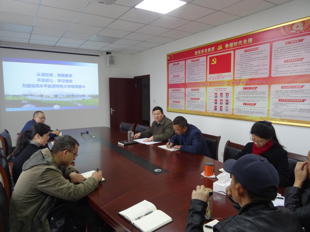 本學期開學前,學校校長趙金洲在中層干部大會上作了《認清形勢、明確要求、不忘初心、牢記使命,為建設高水平能源特色大學繼續奮斗》的報告。全體職工深入學習了報告中“新時代高等教育新形勢和新要求”、“學校面臨的機遇和挑戰”、“2018年主要工作”三部分內容,充分感受到了學校在2018至2020年未來3年面臨的挑戰與機遇,并深刻認識到只有在學校黨委帶領下,大家團結一致、統一認識、深化改革,才能在挑戰面前把握機遇,真正邁入雙一流大學的國家隊。
