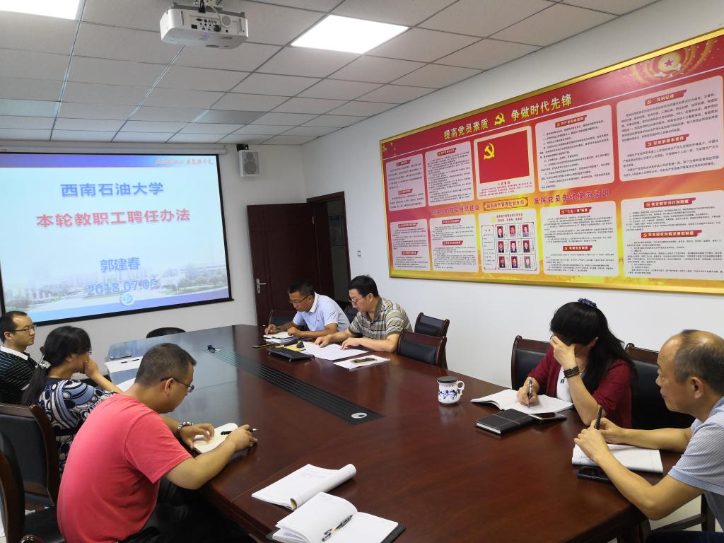 彭尚源帶領大家學習了關于《中共四川省委關于深入學習貫徹習近平總書記對四川工作系列重要指示精神的決定》、《中共四川省委關于全面推動高質量發展的決定》的說明、教育部部長陳寶生在新時代全國高等學校本科教育工作會議上的講話,大家詳細了解了“一干多支、五區協同”、“四向拓展、全域開放”的四川新格局新思想,以及高等教育全面提高人才培養能力的“成都宣言”內容。學習討論中,大家紛紛表示要以職工聘任為契機,將思想和行動統一到實現聘任目標上來,做好自己的本職工作,為學校雙一流建設發展做出自己的貢獻。