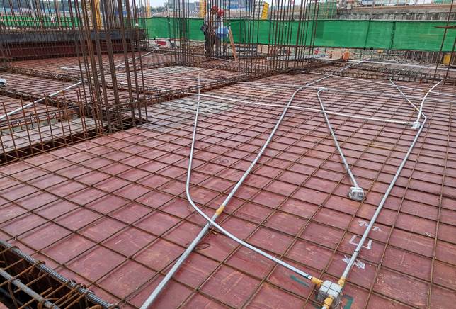 3、9#樓筏板砼完成負二層支模架及模板施工完成,鋼筋綁扎完成100%。