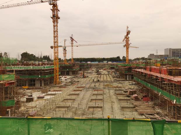 4、10#樓負二層支模架及模板、鋼筋施工完成90%。