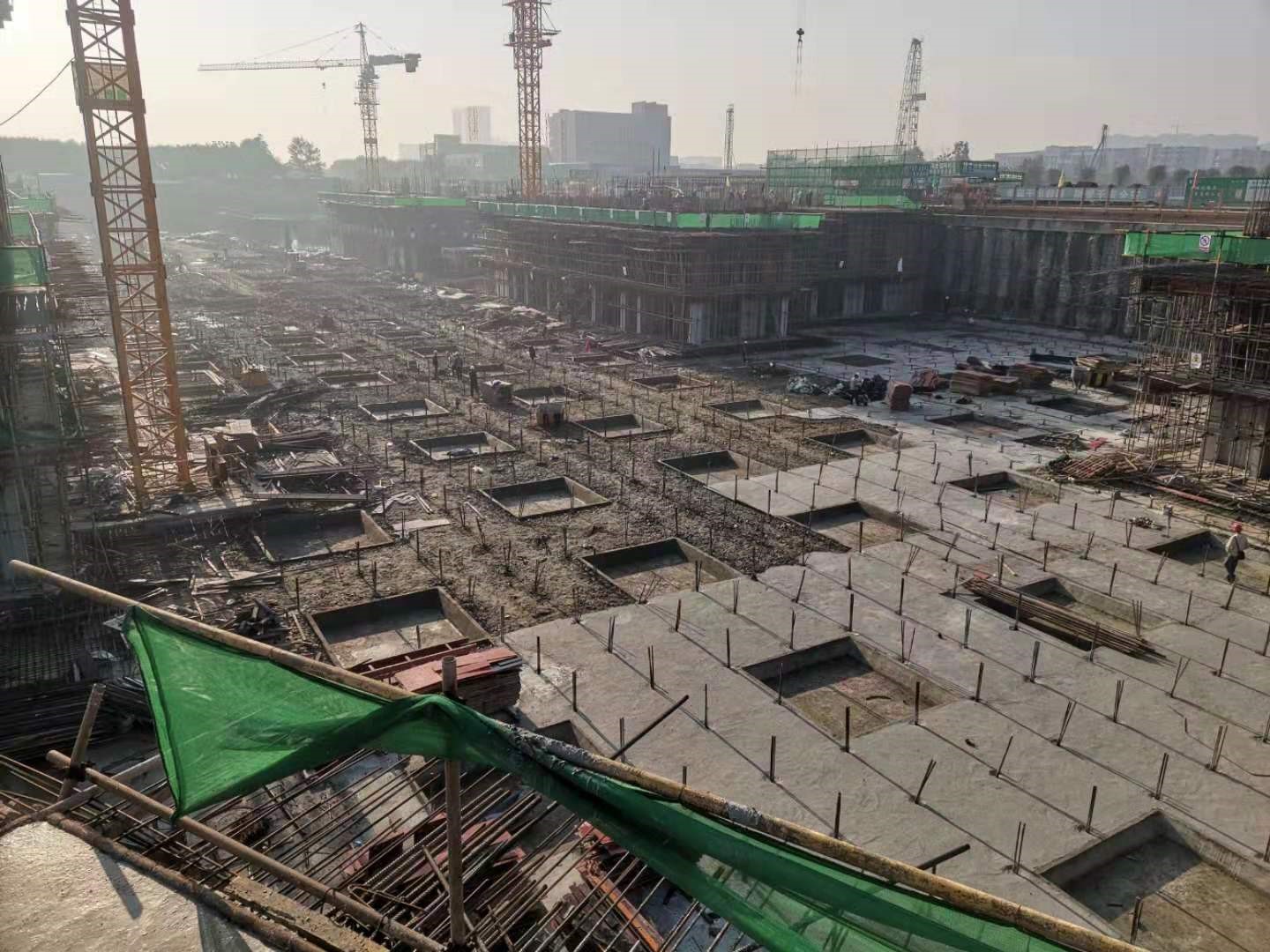 3、9#樓筏板砼負一層支模架及模板施工完成60%,鋼筋施工完成60%。
