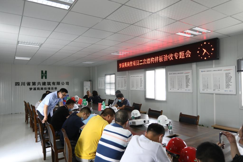 明德博創公司負責人介紹了項目施工情況,目前項目施工進度正常,其中4號樓即將完成主體結構封頂,其余各樓棟均按計劃有序推進,同時樣板間也正在施工;地下室主體結構施工已完成,正進行砌體施工。
