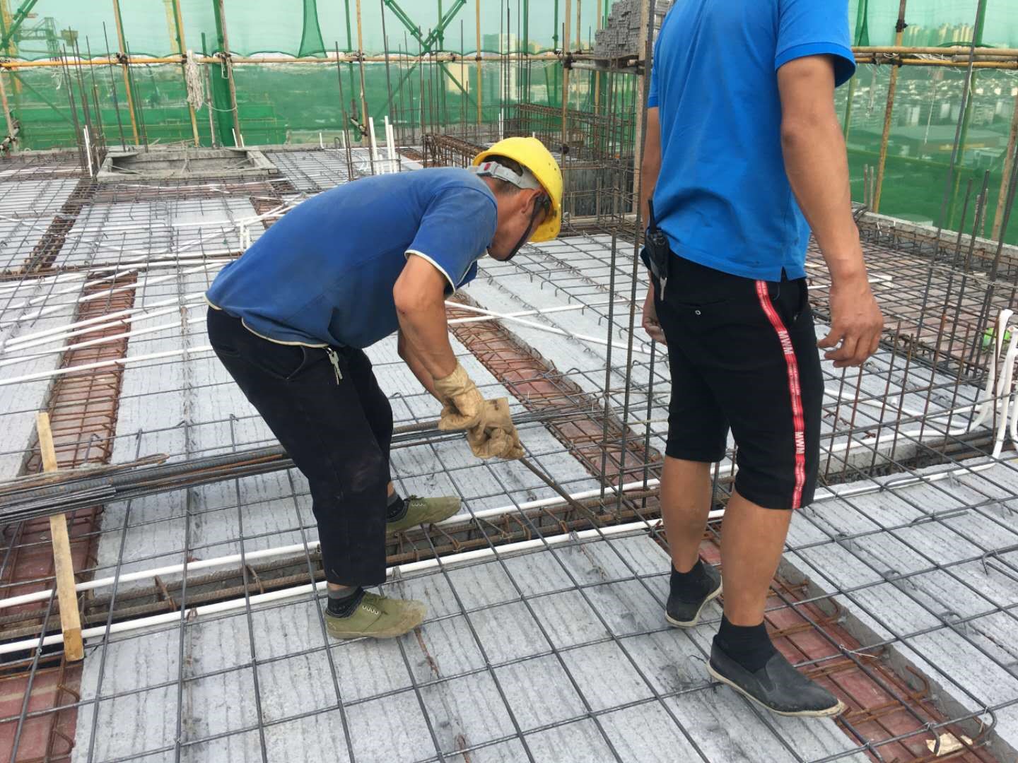 二十五層模板鋼筋完成100%,十二層砌體施工完成;構造柱7層完成;輕質隔墻完成6層完成。 |