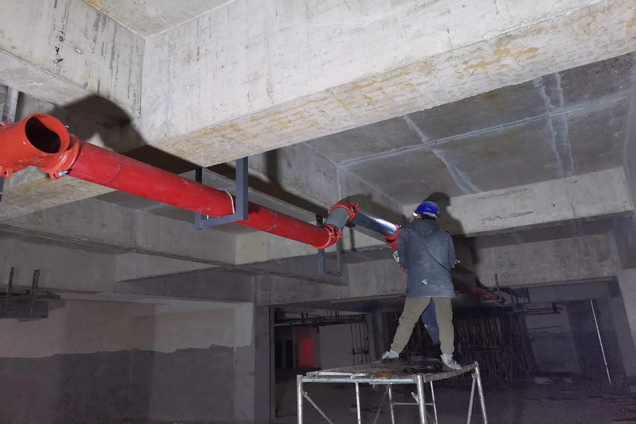 地下室消防主管施工中
