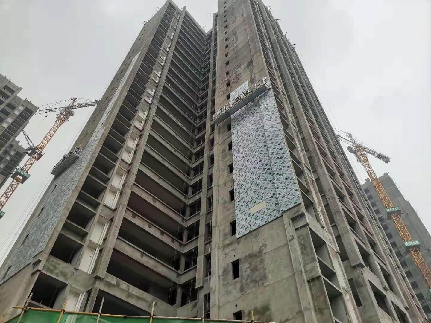 外窗安裝完成80%;外墻一體板安裝墻面板完成500㎡(合計約2800㎡)(主樓南側和西側); 主樓北側和東側幕墻墻面安裝石材板300㎡;主樓南側和西側副龍骨安裝完成。完成2-22層排水管口封堵。架空層自重力排水下到地下室負一層。 |