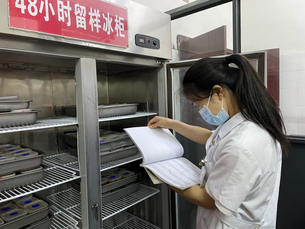 檢查組重點檢查了教工食堂、學生食堂后廚環境衛生、食品存儲、餐具消毒、操作規范、從業人員健康管理、疫情防控以及食品留樣等情況。各食堂整體檢查情況良好,食堂管理較為規范,食品安全設施設備配置齊全,后廚操作較為規范,注重員工健康動態管理,疫情防控措施比較到位。