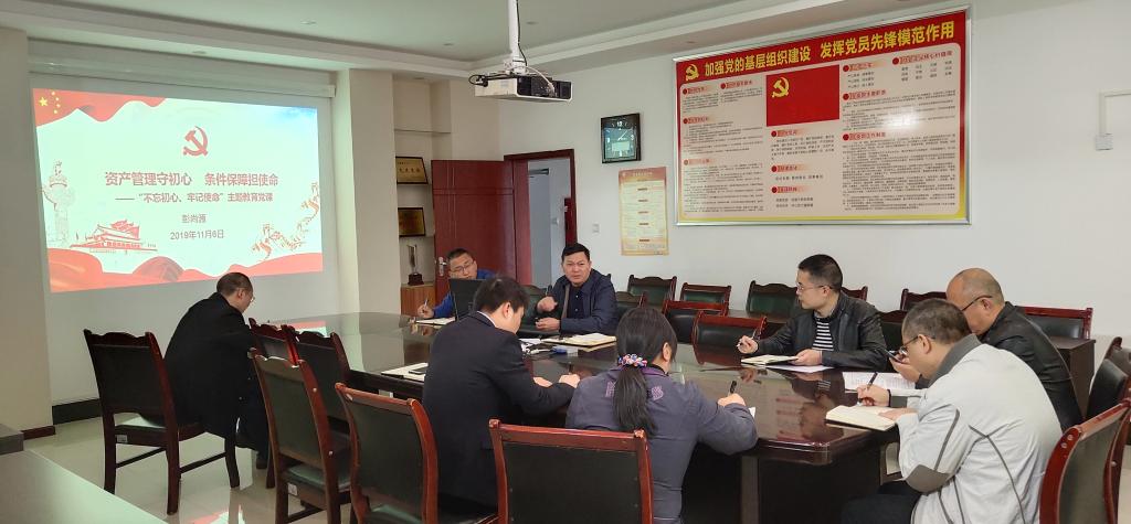 11月6日下午,國資處黨支部書記彭尚源圍繞國有資產管理的使命與擔當、責任與態度,為支部黨員講“資產管理守初心,條件保障擔使命”專題黨課。