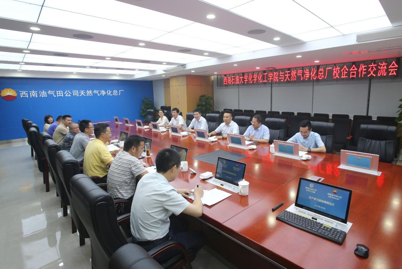 7月7日,化工院院長段明帶隊一行6人走訪中國石油西南油氣田公司天然氣凈化總廠,與中國石油西南油氣田公司天然氣凈化總廠廠長、黨委副書記王軍,凈化總廠黨委書記、副廠長梅林等領導開展座談交流。 會上,段明指出,化學化工學院近年來堅持銳意改革,不斷創新完善人才培養機制,取得突出成績,化學學科進入ESI世界排名前1%、化學工程與技術第四輪學科評估獲“B+”、三個專業獲批為國家級一流本科建設點、兩個專業通過中國工程教育專業認證、學生培養與發展質量再上新臺階。段明說,各項成績的背后離不開西南油氣田公司天然氣凈化總廠長期以來的大力支持,本次前來交流就是希望進一步深化合作,探索建立校企協同育人與學生培養有機融合的新模式,實現共建共享、互利互惠、雙向共贏。 西南油氣田公司天然氣凈化總廠廠長、黨委副書記王軍代表總廠向學院工作組表示熱烈歡迎。王軍說,化工院畢業生基礎知識扎實、創新能力突出、綜合素質全面,工作中展現出能吃苦、不怕苦、不喊累、不抱怨的奮斗精神,在總廠各類重要崗位上都有學院畢業生的身影。西南油氣田公司天然氣凈化總廠黨委書記、副廠長梅林指出,凈化總廠目前正積極響應西南油氣田公司“上產500億,奮斗800億”的奮斗征程,急切需要大量專業人才支持,愿意依托西南石油大學人才智庫優勢,開展校企合作,共同提高雙方的技術水平、人員素質、經濟效益和社會效益。 化工院副院長張輝匯報了學院概況、學科建設、雙碳技術、科技創新、學生培養等方面情況。西南油氣田公司天然氣凈化總廠黨委委員、副廠長張小兵匯報了凈化總廠基本概況、發展目標、存在的技術難題等。與會人員就有關方面開展了熱烈交流,雙方一致同意在科技項目聯合攻關、產學研用一體化探索、碳中和碳達峰探索、學生實習實踐基地建設、黨建融合聯動、員工繼續教育等方面強化校企合作,樹立新標桿。 隨后,學院向天然氣凈化總廠授牌建立“西南石油大學化學化工學院生產實習基地”。段明、王軍、梅林等為實習基地揭牌。 座談交流會前,學院工作組還參觀了西南油氣田公司天然氣凈化總廠生產運行(應急)指揮中心。 陪同走訪交流的還有化學化工學院黨委副書記、紀委書記陳剛,化工教研室主任王治紅、黨支部書記余亞蘭,輔導員楊磊。西南油氣田公司天然氣凈化總廠黨委委員、副廠長王曉東,生產運行科、人事科(黨委組織部)、工藝技術科、培訓基地等部門負責人參加座談交流。