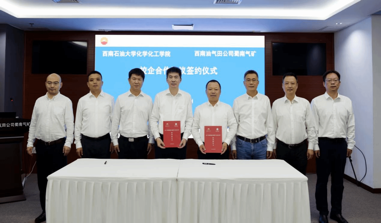 9月23日,化學化工學院工作組赴中國石油集團公司西南油氣田分公司蜀南氣礦調研交流,雙方舉行座談并簽訂校企合作協議,揭牌“油氣與新能源融合創新中心”。化學化工學院黨委書記蒲冠州,院長段明,黨委副書記章志華,副院長唐鋆磊及部分教師代表,蜀南氣礦礦長、黨委副書記杜強,黨委書記、工會主席、副礦長楊春等技術管理骨干代表參會。 座談中,雙方就合作方向與落地路徑達成高度共識。化學化工學院段明表示將以此次簽約為契機,打造校企協同典型范例,推動油田企業與高校在技術攻關、人才培養領域同向發力、攜手前行;蒲冠州指出此次簽約是雙方深化產學研融合的務實之舉,對服務國家能源安全、助力西南油氣產業高質量發展意義重大,學院將迅速組建聯合領導小組,開放科研資源,與企業實現互利共贏、協同發展。蜀南氣礦楊春高度肯定化學化工學院在油田化學、新能源領域的辦學及科研成就,明確蜀南氣礦將全力推進并支持與化學化工學院的深度合作,通過優勢互補,實現協同創新與人才共育;杜強則圍繞合作落地提出具體舉措,明確將建立校企定期交流、雙方定向培養培訓、科研聯合攻關三大合作機制,推動關鍵技術攻關和成果就地轉化,助力蜀南氣礦安全高效、綠色低碳高質量發展。 會談結束后,段明與杜強分別代表校企雙方簽訂了校企合作協議。根據協議,雙方將重點開展三方面合作:一是人才培養,共建實踐實訓基地與研究生工作站,共辦校企技術論壇,互邀專家授課交流,定制培養專業人才;二是科研攻關,組建聯合團隊申報重大項目,共享儀器設備與科技信息,優先開展專項科研合作;三是機制保障,成立聯合領導小組,建立領導定期會晤與年度科技交流制度,清單化推進項目落地。 本次校企合作將充分發揮雙方優勢,實現互補。通過協議的簽署,雙方將推動技術研發與實際應用的深度融合,構建“優勢互補、協同攻關、成果共享”的合作新模式,實現校企共贏,為國家能源安全貢獻力量。