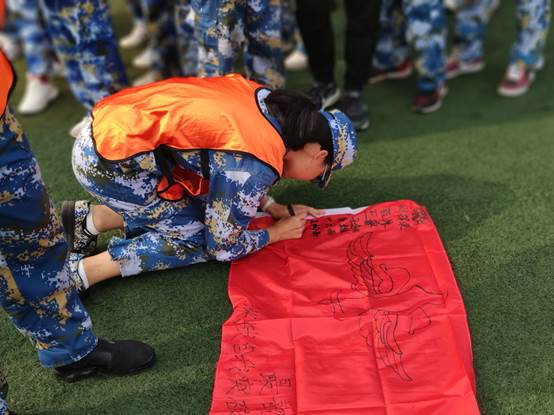 圖5 表演環節 活動過程中,同學們隊旗作畫、歡聲笑語。18級化學唐勝輝同學說到,此次素質拓展活動充分挖掘了同學們的各項技能,也讓同學們深刻地感受到團結的力量,體會到同學間的友愛與真情,讓一些看似不可能完成的任務順利完成。這次活動體會了不一樣的自己,并且樂在其中。 各組表演結束后,全體新生以母校校慶為契機,在所有小組的共同努力下,完成了巨畫的拼接,為西南石油大學60周年校慶送上生日祝福,也為今天的戶外拓展活動畫上了圓滿的句號。