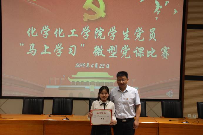 為創新黨員學習黨的十九大精神模式,增強黨內政治生活的政治性、時代性、原則性,發揮學生黨員正面典型的示范引領作用,引導廣大黨員堅定理想信念,錘煉黨性修養,牢固樹立政治意識、大局意識、核心意識和看齊意識。4月23日晚7:00,化工院學生公寓黨員服務站暨先鋒集結網絡文化工作室主辦的“馬上學習”微黨課比賽于思學樓A114舉行。化工院黨委書記王兵、黨委組織部副部長張鳳、校團委副書記張維、化工院黨委副書記陳剛、黨委宣傳部新聞中心總編輯向發全、馬克思主義學院李學林老師及藝術學院李民七位老師作為受邀嘉賓。教工、學生黨支部書記,以及全體學生黨員參加了本次活動。 化工院黨委書記王兵致辭。他表示,舉辦微黨課比賽,就是以習近平新時代中國特色社會主義思想為指引,強化“四個意識”、堅定“四個自信”,踐行“兩個維護”,舉理想之旗、揚奮斗之帆,深入推進“兩學一做”常態化工作,進一步豐富黨員教育手段,不斷加強黨的思想政治建設,把“兩學一做”學習教育覆蓋到日常學習生活中。當前全院師生正在全面學習宣傳貫徹習近平新時代中國特色社會主義思想和黨的十九大精神,全體參賽黨員能夠緊密結合時政,用微黨課傳遞正能量、唱響主旋律,充分展示了我院黨員勤學奮進、勇作表率的新時代風貌。他希望全體黨員和入黨積極分子要以微黨課比賽為契機,繼續加強黨的理論知識學習、錘煉黨性修養,不忘初心、牢記使命,在求學道路上立鴻鵠志、做奮斗者,為新時代“中國夢的實現貢獻自己的青春力量”! 本次微黨課取名為“馬上學習”微型黨課比賽,實指運用“馬克思理論學習習近平觀點”為主題進行授課,大賽通過支部推薦、初賽、復賽層層選拔,歷時近2個月,最終10位同學脫穎而出,站在了決賽的舞臺。微型黨課的主題選擇靈活多樣、形式新穎活潑,貼近大家學習生活,更容易讓大家聽得懂、記得住、用得上,簡單明了地達到說透道理、闡明主題的目的,是一種新型的黨課教育模式。10位參賽選手分別以《何為青春,青春為何》、《當代青年大學生的理想與擔當》和《贊贊新時代》等為題目,精心準備、競相演講,為全體觀眾呈現了一場精彩紛呈、能量滿滿的微黨課比賽。黨員申雨韓就“信而仰之,篤而行之——與青年黨員談信仰”展開授課,她指出,信仰,只能是信仰。堅守著身為黨員的信仰,為祖國、為人民不惜犧牲個人的一切。黨員李虹杰就“當代青年學生的理想與擔當”進行授課,他指出,青年之文明,奮斗之文明也。中華民族偉大復興的中國夢終將在一代代青年的接力奮斗中變為現實。黨員王萍萍就“我的‘90后’男神”展開授課,她提出,每個時代總是需要一些走在前面沖鋒陷陣的人們,無論是保衛祖國家園,還是占領科學高地,還是致力于工程技術的改進,相信只要保持一份熱愛與堅守,我們總會可以在實現自身價值的同時為這個國家、這個社會做出一定的貢獻。 選手們授課結束后,黨委組織部副部長張鳳代表評委對全體參賽選手的現場授課內容、授課技巧等進行了精彩點評,同時也希望同學們能積極做到“馬上學習”,不斷提升自身的政治素質和文化素養。 此微黨課比賽,旨在以“黨課”為載體,創新黨員學習黨的十九大精神模式,著力增強黨內政治生活的政治性、時代性、原則性。著力發揮黨員正面典型的示范引領作用,引導廣大黨員堅定理想信念,錘煉黨性修養,牢固樹立政治意識、大局意識、核心意識和看齊意識。最終李虹杰、楊杰、張詩雨和王萍萍等四名同學獲得優勝獎;申雨韓、蔣茹芬和張瀟嬙三名同學獲得三等獎;胡子穎和凡妮兩名同學獲得二等獎;唐林茂同學獲得一等獎。 參加此次微黨課的觀眾任小麗表示,“雖然只有短短的兩個小時,但是各位選手精彩的授課,讓我獲益匪淺,通過比賽形式進行學習、交流,開展微黨課的過程,是黨員不斷在思想上看齊、行動上對標兵的過程,作為一名入黨積極分子,在今后的學習生活中,我將不忘初心、牢記使命,做奮進者,力爭上游,做時代新人!”(文/謝友清 圖/羅銀川)