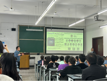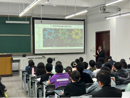 5月12日下午,上海交通大學化學化工學院董金橋教授受邀來到我校,在明德樓A303作了題為“分子基熒光多孔材料的合成與應用”的學術報告。報告會由我院魯紅升教授主持,部分化工院師生參與本次報告會。 報告會上,董金橋教授首先以“基于多孔材料進行光功能特性的研究受到科學家們的廣泛關注”為開篇,強調多孔材料在科學研究領域的重要意義。董教授指出多孔材料優異的孔隙率和超大的比表面積展現出誘人的物理和化學性質,其豐富的有機配體和可修飾的框架結構使得它們在光功能材料領域有著極大的應用前景。緊接著,他提到對比傳統的檢測手段,熒光傳感利用可調的發色團,針對各分析物提供不同的識別位點,具有高靈敏度、高響應性、低檢測限和特異性識別的特點。最后,董教授總結到構筑高靈敏度、高穩定性的熒光多孔材料是一項有意義的研究。 會議結束后,大家踴躍提問,董教授都耐心解答。相信同學們只要一直保持一顆好奇心,勇于探索,不怕困難,積極投身科研事業,定會一步步攻克技術難題。 專家簡介: 董金橋,上海交通大學化學化工學院長聘教軌副教授,博士生導師。2014年獲得上海交通大學博士學位,2015年到2019年在新加坡國立大學從事博士后研究,2019年 到2021年在英國布里斯托大學擔任助理研究員,2021年7月加入上海交通大學化學化工學院擔任長聘教軌副教授、博士生導師。入選國家海外高層次引進人才計劃、上海市海外高層次引進人才計劃,獲得上海市高等學校特聘教授(東方學者)。上海交通大學“小米青年學者”等榮譽。主要從事功能納米超分孔材料和多孔晶態框架材料的設計組裝以及性能研究,共發表SCI學術論文48篇,其中第一作者論文23篇,包括Nature (1篇), Nature Materials (1篇), Nature Chemistry (1篇),Acc. Chem. Res(1篇),Nat. Commun (1篇), J. Am. Chem. Soc (3篇), Agnew. Chem. Int. Ed (5篇), ACSNano;(1篇)等。主持國家自然科學基金委面上項目,參與國家自然科學基金委重點項目和杰青項目。受邀擔任多種國際期刊的審稿人,并多次在國內和國際會議做學術報告。
