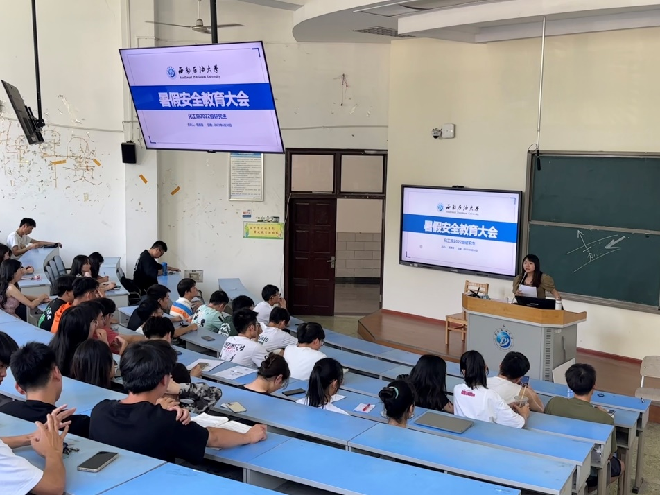 為扎實做好專業學位碩士外出實踐安全穩定工作,進一步提高暑期研究生的安全防范意識和自我保護能力,6月30日下午 14:30在思學樓B110舉行了2022級專業學位碩士實踐、實習及暑期安全教育大會,會議由輔導員程美容主持,學院實驗室主任卿大詠主講,2022級全體專業學位碩士參與。 會上,卿大詠老師從專業實踐、實習加強安全教育的重要性,外出實踐、實習、實訓者必讀內容以及高校學生安全防范及自救知識這三個方面展開講解。首先,卿老師從政策方面講述安全對于整個國家和社會的重要性。緊接著,卿老師從“安全”的定義出發,告訴同學們現代文明社會對于安全教育的重視,讓同學們務必牢記教育部對學生生產實習安全的要求以及化學化工學院對學生生產實習安全的要求,并以實際案例告誡同學們安全問題一定要高度重視、不容小視。接下來,卿老師帶領同學們一起閱讀了研究生校外實踐安全管理實施細則,其中重點講述了學生安全防范及自救知識這一章內容,他告誡同學們,在外出實踐的過程中,人身財產安全尤其重要,并且特別強調防盜防詐騙以及遠離傳銷組織。同學們在企業的工廠及實驗室進行學習和工作時,一定要遵守單位的安全管理制度,做到牢記制度、嚴格遵守、按章操作、規范執行。最后,卿老師強調相關的報警、急救電話,指導教師及相關責任人員的電話必須牢記,學生也應具備主動求生的能力以及掌握急救基本技能。 會議最后,程老師強調了暑期安全注意事項,希望同學們合理安排假期生活,提高安全防范意識,關注心理健康。充分利用假期開展自主學習活動,做好總結提升,把青春奮斗融入黨和人民的發展事業,努力成為實現中華民族偉大復興的先鋒力量!
