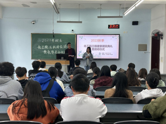 2023年10月12日,化工院學生會生活權益部在明德樓A205舉行2023年秋季學期“三級建家”頒獎典禮暨啟動儀式。本次典禮對學院本科生在上一學期寢室內務、學習、文體活動等各方面取得的優異成績和生活作風作出表彰。2020級輔導員、學院寢室建設工作負責老師彭懷雪、大一生活委員、獲獎寢室代表出席本次頒獎活動。 大會以鼓勵先進、激勵新生為主要目的,活動開始,對上學期“三級建家”中表現優秀的寢室進行表揚。活動過程中,主持人常婧妍和韋冠澤為同學們講解了“三級建家”的整體情況,針對男女寢室以及各專業的成功建家比例進行分析,并詳細介紹了“三級建家”的報名流程、實施細則和創建標準。隨后,彭懷雪老師為“優秀之家”獲獎寢室頒獎并合影留念。 活動最后,彭懷雪老師對本次“三級建家”活動進行總結,鼓勵獲獎寢室再接再厲,以更好的狀態投入新學期的學習和生活。同時,激勵2023級新生積極參加“三級建家”及其他寢室建設活動,引導同學們養成講文明講衛生、守紀律的良好習慣,期待同學們將來在學習和生活中等方面的優異表現,共建健康文明和諧的生活環境。 文/許思源 圖/強梓焱 審核/彭懷雪