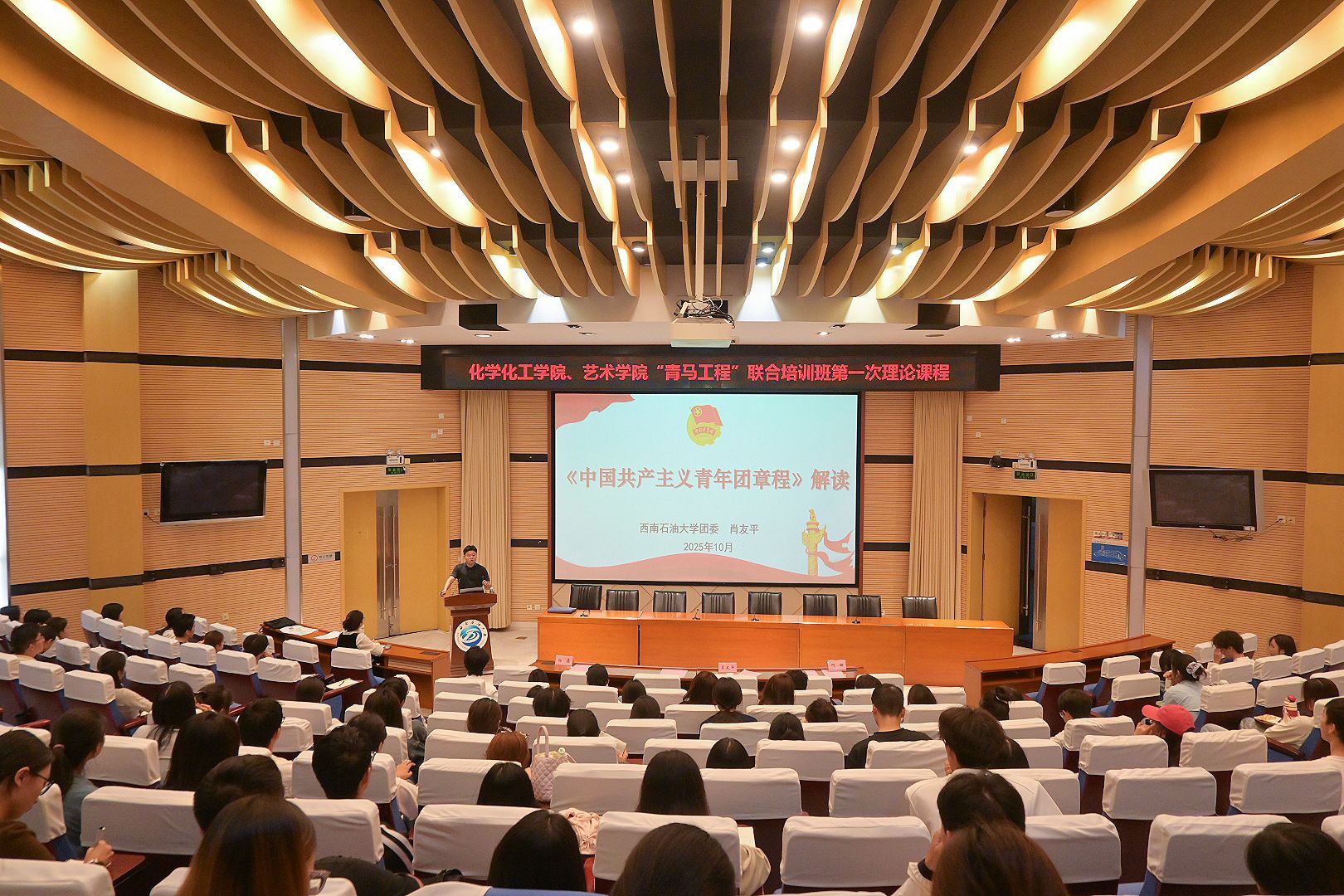 10月15日晚,化學(xué)化工學(xué)院、藝術(shù)學(xué)院2025-2026學(xué)年青年馬克思主義者培養(yǎng)工程(簡稱“青馬工程”)聯(lián)合培訓(xùn)班在思學(xué)樓A114正式開班。 校團(tuán)委書記肖友平,化工院黨委副書記、紀(jì)委書記章志華,藝術(shù)學(xué)院黨委副書記、紀(jì)委書記何姍,兩學(xué)院團(tuán)委負(fù)責(zé)人及100余名學(xué)員參加開班儀式。 肖友平代表校團(tuán)委向聯(lián)合培訓(xùn)班順利開班表示祝賀,希望全體學(xué)員能通過培訓(xùn)班的學(xué)習(xí)進(jìn)一步“補(bǔ)鈣鑄魂”,努力爭當(dāng)黨的創(chuàng)新理論的堅(jiān)定信仰者、民族復(fù)興偉業(yè)的主動(dòng)踐行者、堪當(dāng)時(shí)代重任的青年奮斗者,展現(xiàn)出團(tuán)學(xué)骨干的良好風(fēng)采。 化工院2025級(jí)本科生王梽焮代表全體學(xué)員發(fā)言,表示將端正態(tài)度、嚴(yán)守紀(jì)律、全心投入,認(rèn)真完成培訓(xùn)班全部學(xué)習(xí)任務(wù),力爭輻射影響和帶動(dòng)身邊更多同學(xué)。藝術(shù)學(xué)院2024級(jí)本科生夏顥蕓代表培訓(xùn)班臨時(shí)班委會(huì)發(fā)言,表示將主動(dòng)增強(qiáng)服務(wù)意識(shí),帶頭講奉獻(xiàn)講擔(dān)當(dāng)講作為,帶領(lǐng)全體學(xué)員在理論與實(shí)踐的深度融合中淬煉思想、增長才干。 據(jù)了解,本期聯(lián)合培訓(xùn)班是化工院團(tuán)委、藝術(shù)學(xué)院團(tuán)委在學(xué)校團(tuán)委和兩學(xué)院黨委指導(dǎo)支持下,首次針對(duì)不同學(xué)院、不同學(xué)科學(xué)生開展的聯(lián)合培訓(xùn),旨在促進(jìn)資源共享、優(yōu)勢(shì)互補(bǔ),攜手共育德智體美勞全面發(fā)展的時(shí)代新人。 在培訓(xùn)內(nèi)容設(shè)置方面,兩學(xué)院團(tuán)委嚴(yán)格按照《西南石油大學(xué)“青年馬克思主義者培養(yǎng)工程”實(shí)施方案》,扎實(shí)推進(jìn)學(xué)校黨委關(guān)于師生“講”“賽”“踐”“煉”專項(xiàng)活動(dòng)部署,采取集中授課、分散實(shí)踐、交流分享、實(shí)踐鍛煉等方式進(jìn)一步提升學(xué)習(xí)質(zhì)效,創(chuàng)新要求學(xué)員到團(tuán)支部開展團(tuán)課講授、理論宣講,以點(diǎn)帶面展現(xiàn)青年團(tuán)員良好風(fēng)采。 開班儀式結(jié)束后,校團(tuán)委書記肖友平應(yīng)邀以《解讀<中國共產(chǎn)主義青年團(tuán)章程>》為題為全體學(xué)員主講了第一次集中理論課程。