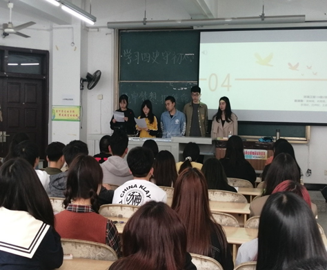 為幫助同學們牢記共產黨人的初心使命,堅定理想信念,堅守人民立場,踐行使命擔當,真正做到知史愛黨,知史愛國,知史擔責。4月23日下午,環(huán)境工程2019級第一、二支部于思學樓C208開展以“學習四史守初心,筑牢夢想擔使命”主題團組織生活,本次團組織生活由環(huán)境工程第一支部范玉峰、儲召紅兩位同學主持,一、二兩支部的班委協(xié)助舉行,環(huán)境工程全體同學參與。 下午兩點半,活動正式開始。活動內容豐富,包括歌曲演唱《為你歌唱》、《沒有共產黨就沒有新中國》,四史故事小講堂《知黨史,感黨恩》,四史視頻學習以及詩朗誦《革命先烈詩抄》。以活動的形式幫助同學們了解四史文化,堅定理想信念。為了進一步加深同學們對四史的理解,本次團組織生活還設置了知識問答環(huán)節(jié)。 第一支部王君濤同學分享到,“以史為鑒,可以知興替。通過學習“四史”,我們應該樹立起正確的歷史觀。只有通過重溫那段血淚史、奮斗史,我們才能更深層次的思考共產黨一直以來的初心以及共產黨人永遠守護的信仰,從而補足精神之鈣,筑牢黨性之魂。現(xiàn)在的我們面對新時代的挑戰(zhàn),面對更加復雜的國際形勢,更要強化黨性修養(yǎng),不忘歷史,砥礪前行。” 最后,主持人儲召紅對活動進行總結,“希望我們環(huán)境工程一、二支部的同學們能夠通過此次活動弘揚抗美援朝偉大精神,傳承紅色基因,把爭做時代新人永存心中。學習四史,牢記初心使命,永葆黨的先進性,傳承紅色基因,為了理想信念不懈奮斗。”(文/圖 彭雪蓮) 審核:曾雅清