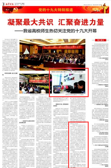 近日,中國教育報(bào)、省教育廳網(wǎng)站、教育導(dǎo)報(bào)等媒體通過圖片、文字等形式集中報(bào)道我校師生熱切關(guān)注黨的十九大。